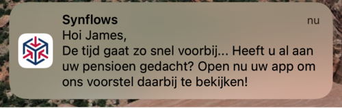 Met een gedegen selectie op je klantenbestand op diverse product- en persoonskenmerken, gevolgd door persoonlijke notificaties naar zijn mobiel geef je je klant het gevoel dat je hem kent en daadwerkelijk wilt helpen. Een ‘Beste Annet, je kunt het energielabel van jouw huis met een paar ingrepen van F naar D brengen, wil je meer weten?’. Of ‘Beste Peter, voor jou als ondernemer geldt vanaf volgende maand dat je een extra aftrekpost hebt, wil je dat we dit voor je regelen?’.